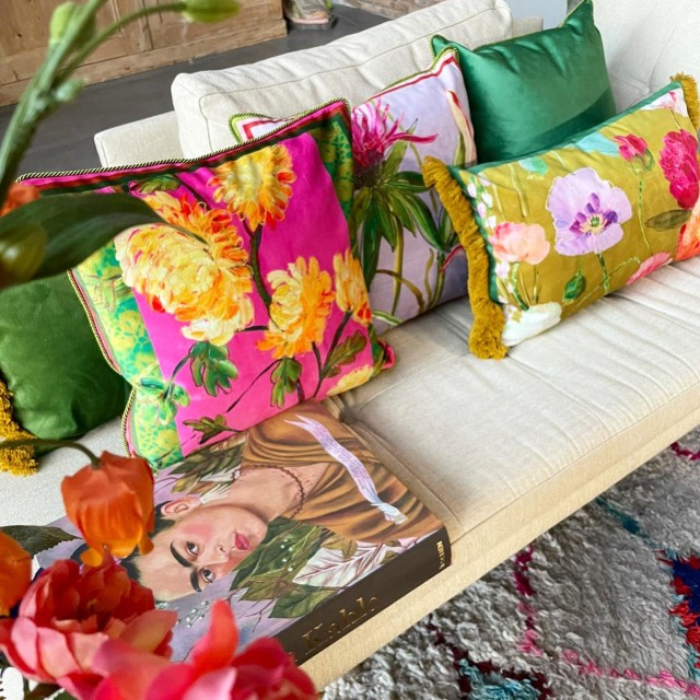 Doortje IJpelaar kussen Pink Dahlia - Huis van Bloemen