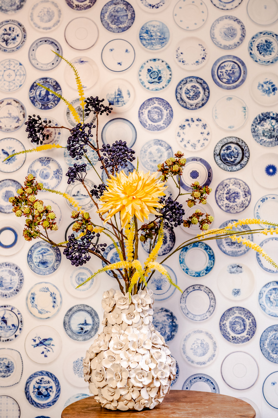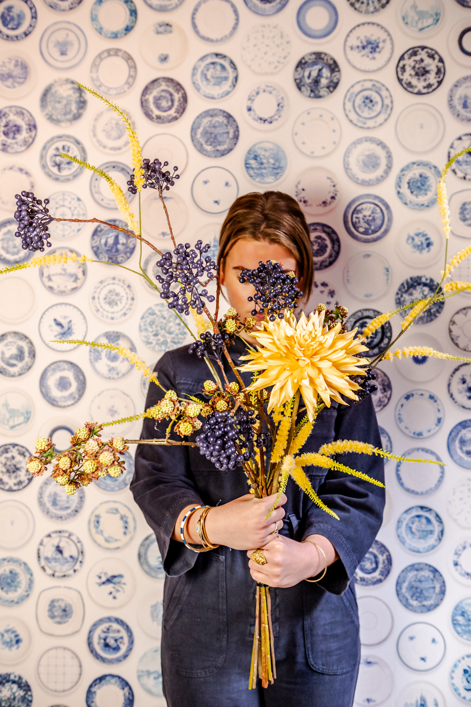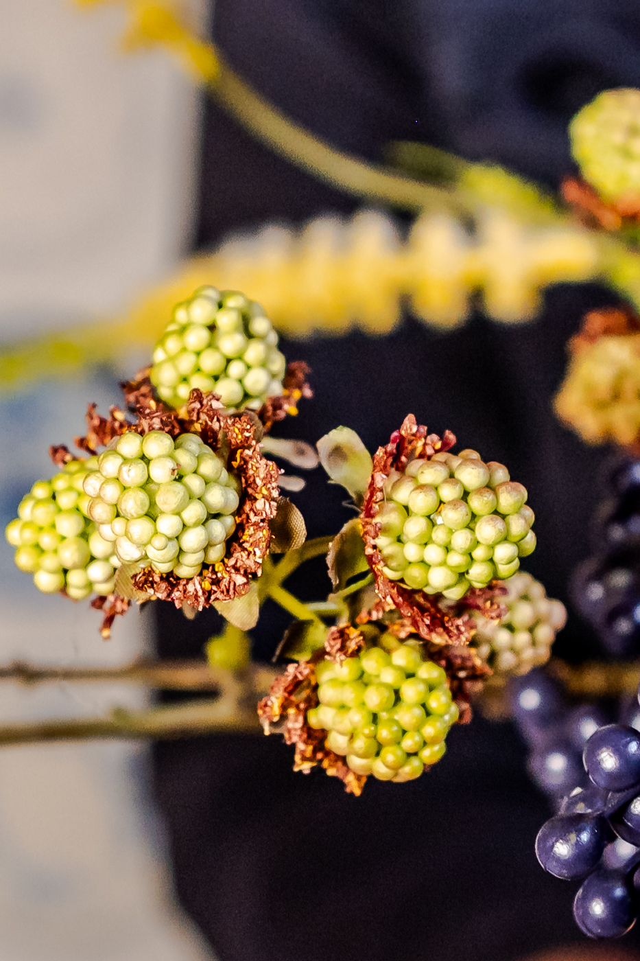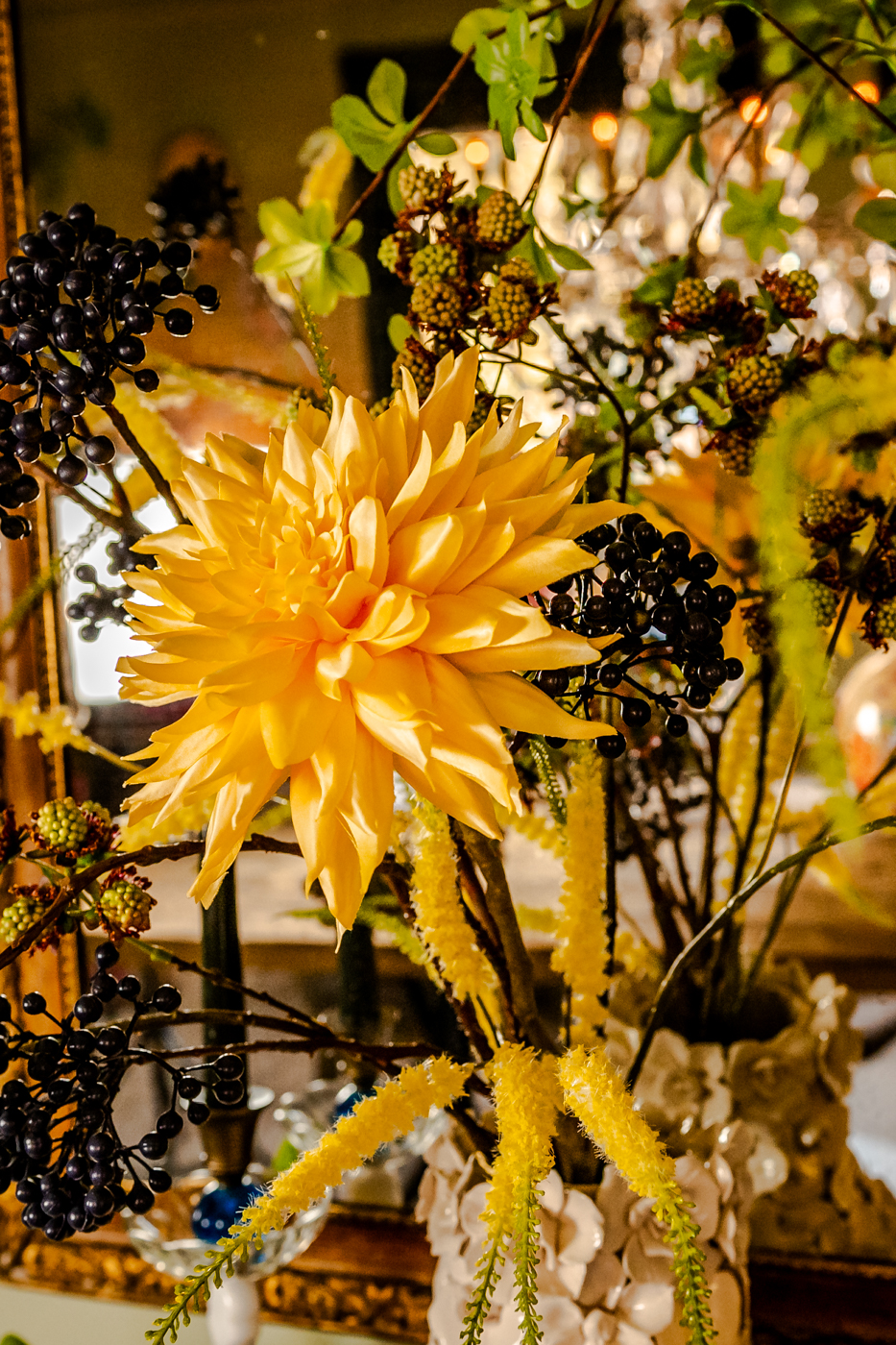 Natuurlijk Fris! Een verrassend fris boeket met verschillende zijden bloemen in de kleuren geel, groen, blauw-zwart. De bloemen zijn niet van echt te onderscheiden. Het boeket, zoals op de afbeelding, bestaat uit 7 takken. De dikte van deze bundeling van stelen kan daardoor nog in een vaas met een smalle hals worden gezet, maar als u het boeket bij elkaar gebonden laat kan het ook in een vaas met een bredere hals.