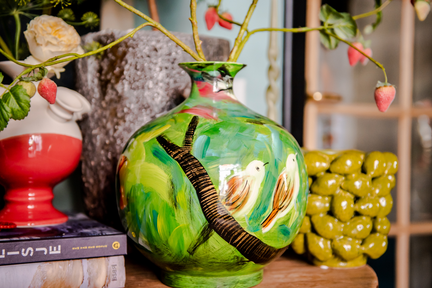 Handbeschilderd porselein. Echt prachtig! Mooi om zo neer te zetten, maar ook met een paar bloemen of takken.